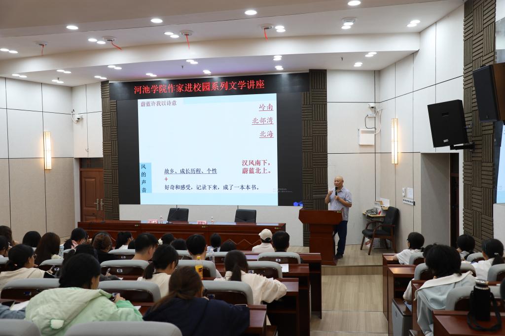 2025年10月29日晚,我院联合创意写作中心在格致楼负101教室开展“作家进校园”文学讲座,我校驻校作家庞...