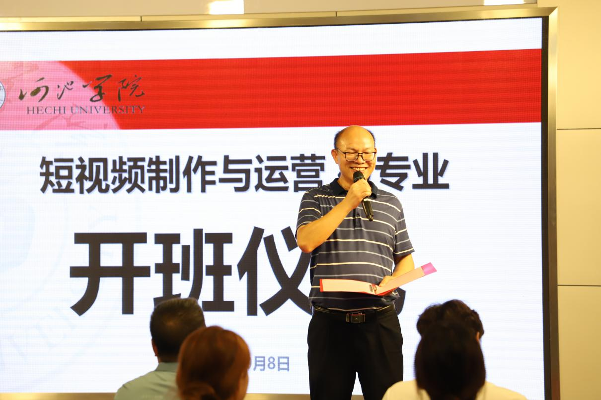 9月8日晚,我院短视频制作与运营微专业开班仪式在东区图书馆121演播厅举行。河池学院副校长贺卫国、教务处处长黄秀香出席开班仪式,我院副院长覃永县老师、短视频制作与运营微专业负责人熊建军教授以及微专业任课教师代表、全体入选学员参加仪式,仪式由我院新闻系主任温雅博士主持。